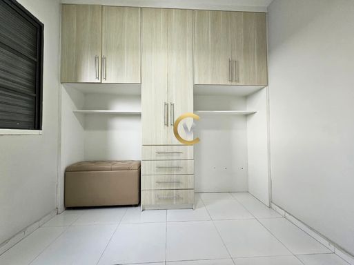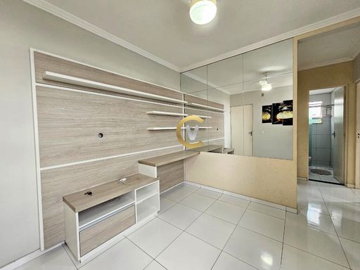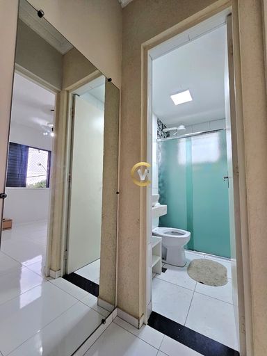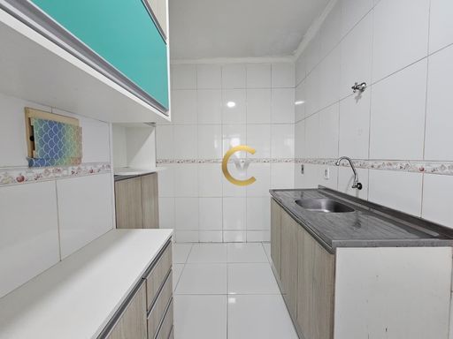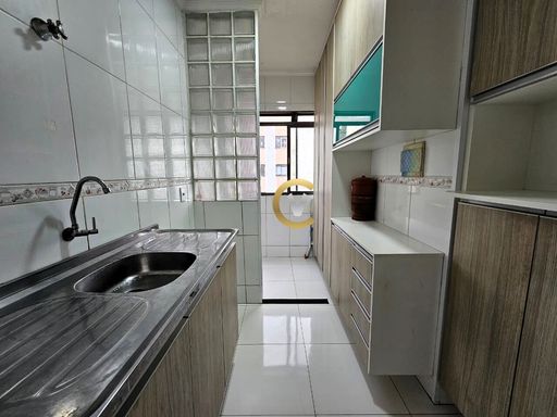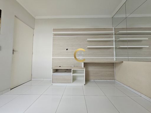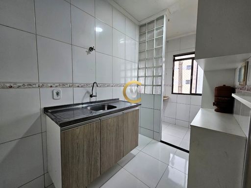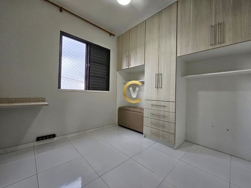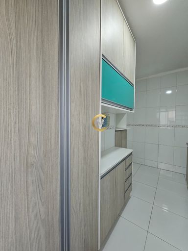 Imóvel com sala com painel para TV, cozinha planejada, área de serviço, com 2 quartos (1 com armário), 1 banheiro e 1 vaga de garagem. Condomínio com portaria 24 horas, minimercado, salão de festas, playground e churrasqueira.