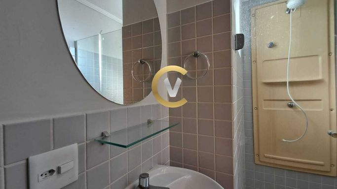 Imóvel com 2 quartos com armários (1 suíte), banheiro social, sala para dois ambientes com sacada, cozinha com móveis planejados e área de serviço. Conta com 1 vaga de garagem coberta.